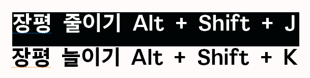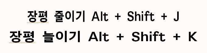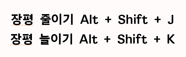 장평을 조절하는 단축키는 Alt + Shift + J와 Alt + Shift + K입니다.
