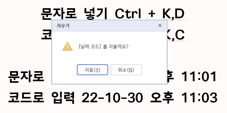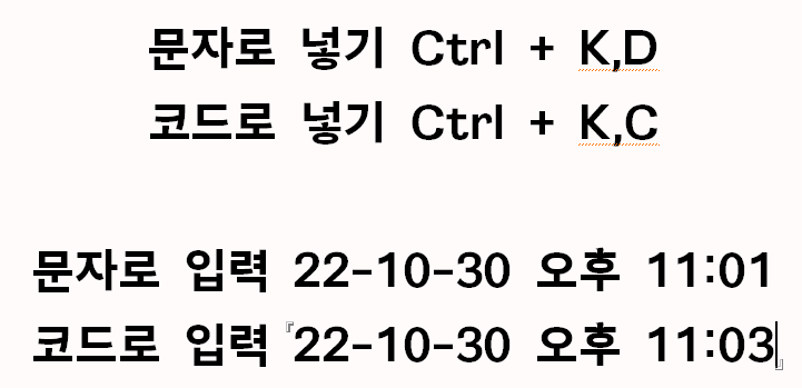 문서를 작성하면서 날짜나 시간을 입력해야 할 경우가 생기는데 일일히 입력하는 것은 번거롭고 비효율적입니다.
